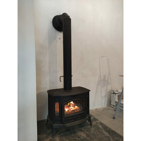 Чугунная печь-камин «Сибирь-10» оснащена универсальным патрубком дымохода, что позволяет осуществлять монтаж дымоходной трубы сверху, проходя через крышу, либо сзади, делая выход через стену.
