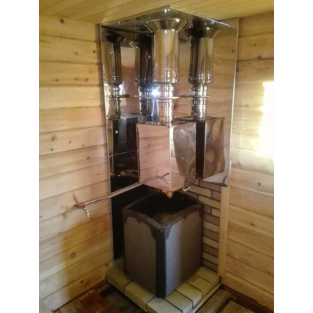 Большое количество качественно нагретых камней, обеспечивает стабильность температуры в парилке. Печь снабжена удобным ящиком зольника, который также является регулятором интенсивности горения. Колосник из литейного чугуна, являющийся элементом конструкции, обеспечивает равномерное устойчивое горение по всей длине топки.